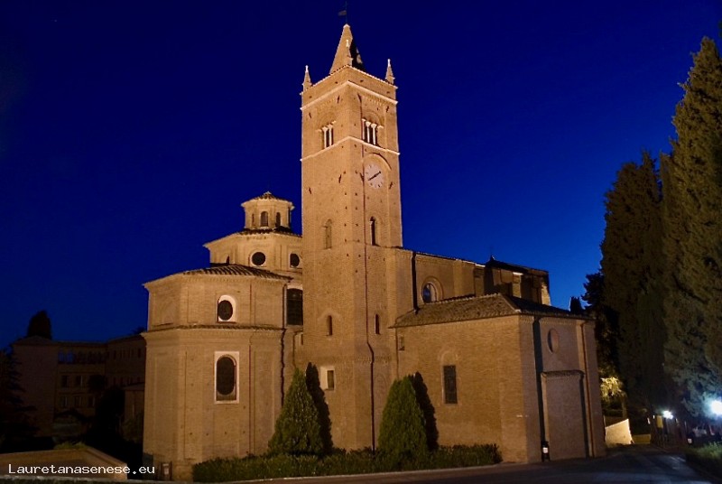 Fondato agli inizi del Trecento dal Beato Bernardo Tolomei nel luogo dove il senese si era ritirato precedentmente in eremitaggio, l'imponente complesso benedettino si trova nell'area meridionale del comune di Asciano, verde oasi ai margini del "Deserto di Accona", ovvero di una zona caratterizzata da ripidi ed aspri calanchi.