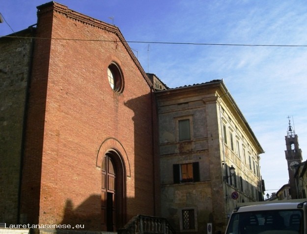 Essendo forse l'unico luogo di culto collocato all'interno della prima cinta muraria del borgo, è facile pensare che la chiesa sia stata edificata al posto di un edificio religioso precedente. La cosa certa è però che, nei secoli successivi alla sua edificazione, ha goduto di lasciti e donazioni consistenti da parte di importanti famiglie del luogo e di senesi con interessi commerciali in loco.
