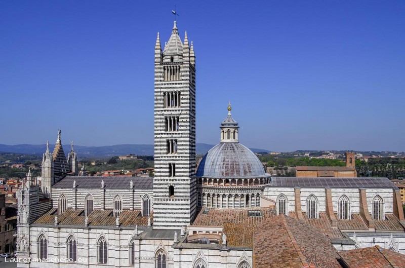Nel luogo dove sorge la cattedrale, sono stati effettuati degli scavi che hanno portato alla luce una precedentecostruzione di periodo longobardo e franco. Nel XII secolo questa chiesa fu inglobata nella costruzione romanica della cattedrale con la facciata rivolta a sud, verso l'attuale "Facciatone" incompiuto del "duomo nuovo". Sembra che il Duomo sia stato consacrato il 18 novembre 1179. In effetti, solo nel XIII secolo la chiesa sarebbe stata trasformata in basilica, con la nuova facciata rivolta verso l'ospedale di Santa Maria della Scala. I lavori di fatto terminrono solo alla fine del secolo successivo e la cupola fu completata nel 1263. L'amministrazione dei lavori era gestita dai canonici locali ma, dal 1258 agli inizi del Trecento, fu affidata ai monaci dell'abbazia di San Galgano per la loro abilità come amministratori. Furono i monaci a chiamare Nicola Pisano e suo figlio Giovanni. Mentre Giovanni si dedicò alla facciata, utilizzando nella parte inferiore i rivestimenti marmorei provenienti dalle cave di Vallerano, il padre scolpì il pulpito, terminandolo nel 1268. Nel 1313 viene terminato il campanile, alto circa 77 metri. Con Siena al massimo del suo splendore, dovette sembrare che il duomo fosse comunque troppo piccolo per la città, si pensò quindi di ampliarlo in modo tale che l'attuale navata centrale diventasse solo il transetto e la facciata tornasse ad essere orientata a sud. Il progetto fu affidato a Lando di Pietro con la delibera del Consiglio della Campana del 23 agosto 1339. A causa della peste del 1348 e di alcuni crolli strutturali, nel giugno del 1357 si decise l'interruzione dei lavori. Dopo qualche anno, ripresero i lavori e nel 1376, la costruzione della parte superiore della facciata venne affidata a Giovanni di Cecco. Poi, nel 1382 vennero alzate le volte della navata centrale determinando il completamento del Duomo.