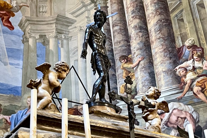Questo venne realizzato nel 1731 da Sebastiano Conca, un artista napoletano. L'opera è imponente e studiata nell'aspetto prospettico particolare, dovuto alla forma non a croce latina della chiesa stessa. Rappresenta la Piscina probatica, riferita ad un passo del Vangelo di San Giovanni dove si descrive come gli infermi sostino vicino alla vasca sperando in una guarigione miracolosa. Si tratta dell'ultima committenza importante voluta dal governo dell'adiacente ospedale di Santa Maria della Scala. Nella chiesa, sul muro laterale destro, si trova l'organo.