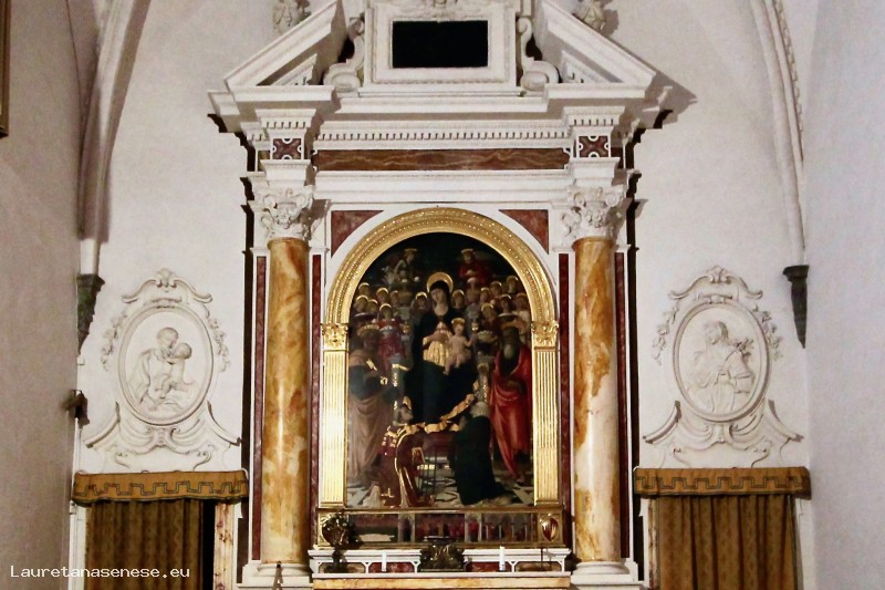 La chiesa di Santa Maria delle Nevi presenta una classicheggiante facciata in travertino, ornata con elementi decorativi in pietra serena. Edificata nel 1471-1472, la pregevole architettura rinascimentale, ad unica navata, è attribuita a Francesco di Giorgio. Sull'altare maggiore notiamo la grande Madonna delle Nevi di Matteo di Giovanni.