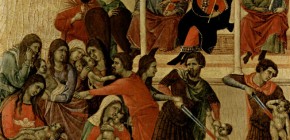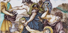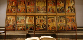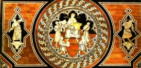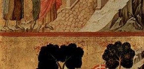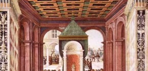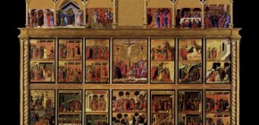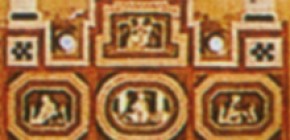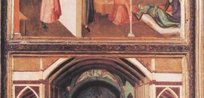 I due tempi della vicenda sono riprodotti in due parti ai lati della porta. V...