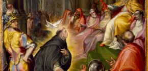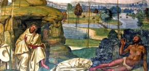 33 - Come Benedetto fa portare il corpo di Cristo sopra al monaco che la terra non voleva ricevere