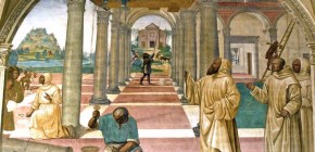 24 - Come Benedetto resuscita lo monacello cui era caduto lo muro addosso