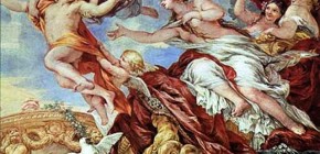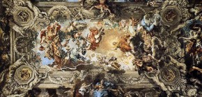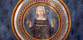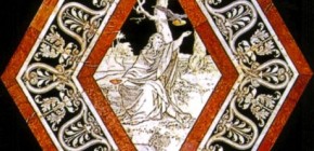 In questa Allegoria la Giustizia è seduta in trono sulla sinistra, con una grande bilancia...