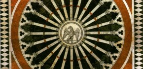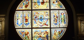 La vetrata circolare che con i suoi sei metri di diametro domina l'abside del Duomo di Sie...