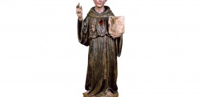 Legno intagliato e policromo, altezza 230 cm. Questa grande statua lignea, de...
