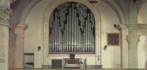 Collocato in cantoria lignea, in cornu Evangelii, in cassa secentesca addossata alla paret...