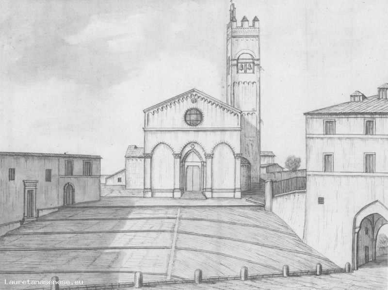 Altro schizzo di Ettore Romagnoli che testimonia la veridicità di alcune supposizioni che facevano risalire la realizzazione della grande scalinata antistante la Pieve Romanica di Sant'Agata alla seconda metà dell'ottocento, in contemporanea all'urbanizzazione di via Mameli e alle sue ramificazioni, da sempre conosciute come "vie Nove".