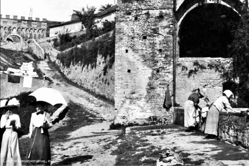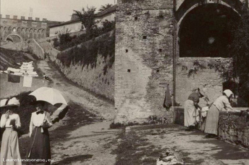 Vecchissima foto di quando le fonti costruite anticamente fuori da Porta Ovile, per utilizzare l'acqua che vi sgorgava, erano ancora utilizzate.