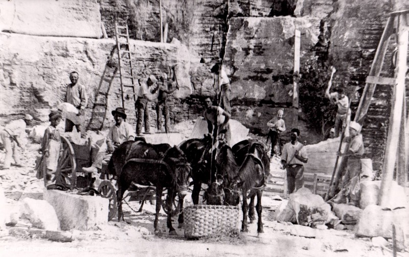 La prima riguarda l'uso del carro a quattro ruote che veniva usato per il trasporto dei blocchi, prima dell'adozione di carrelli su binari