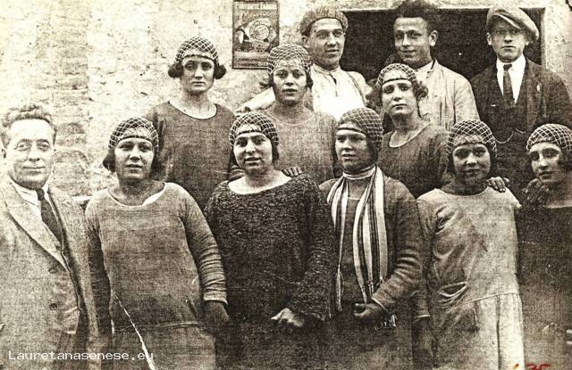 Foto di gruppo che ritrae le persone impegnate nella produzione del Pampepato locale, in compagnia del loro datore di lavoro. Il pampepato è una forma particolare di panforte che contiene molte mandorle e cannella, risultando più scuro e meno dolce.