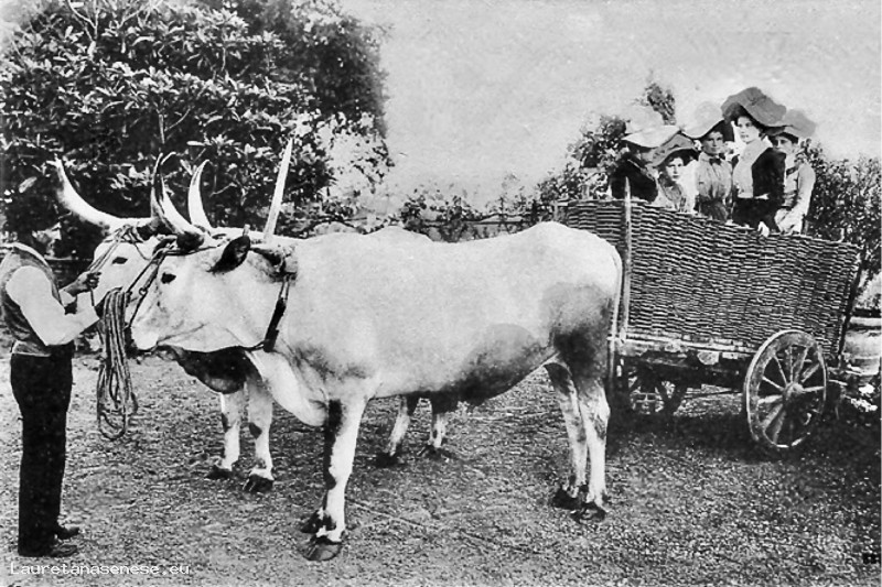 Ancora l'immagine di un carro di buoi utilizzato per il trasporto delle persone.