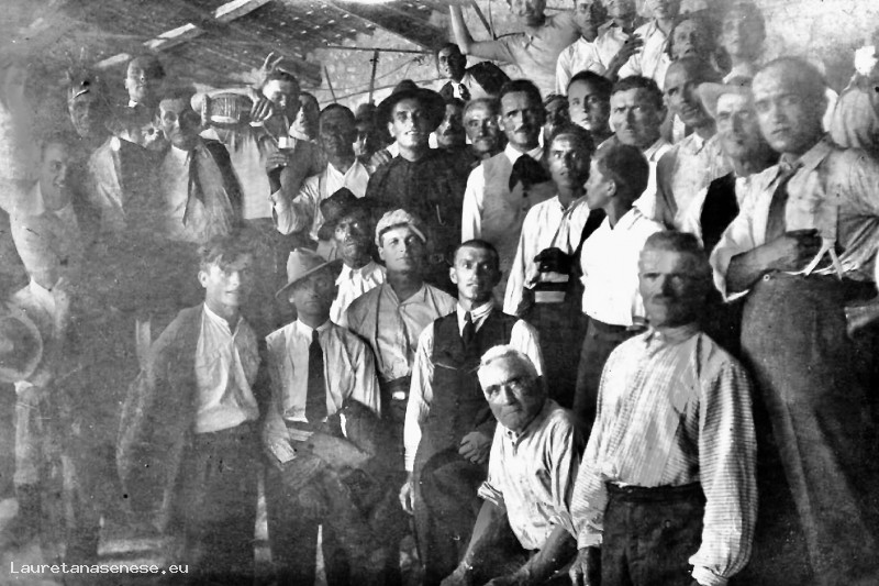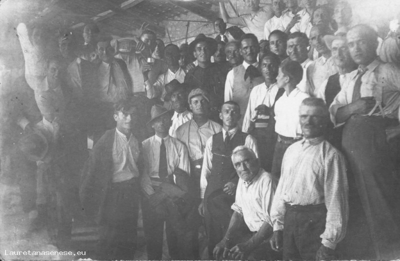 1924? - Gruppo di cavatori insieme sotto una parata per foto ricordo Asciano