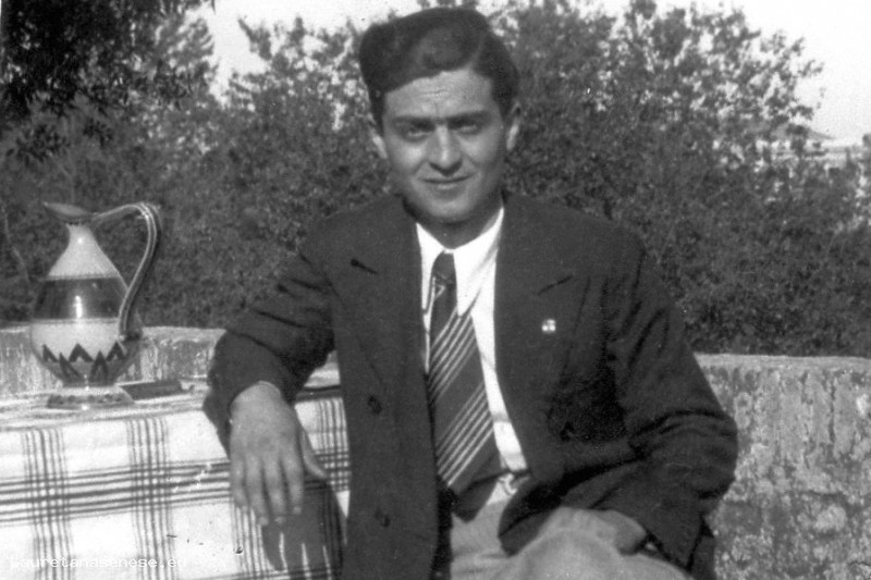 Un giovane e elegantissimo Ezio Fratagnoli, dopo aver svolto il Servizio Militare e prima di essere richiamato in servizio e spedito a combattere nella Guerra d'Africa.