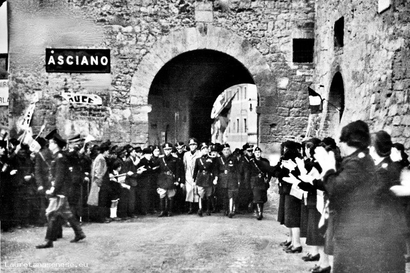 1937, Sabato 27 Novembre - Il corteo fascista esce da Porta Massini Asciano