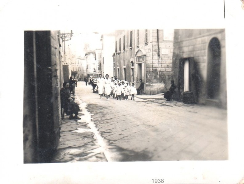 1938 - I bambini della Colonia Elioterapica a passeggio per il paese Asciano