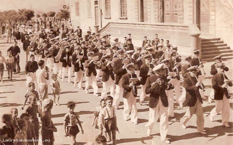 Sembra che la filarmonica fosse al seguito di una gita alla località marina, organizzata dal Dopolavoro Comunale di allora.