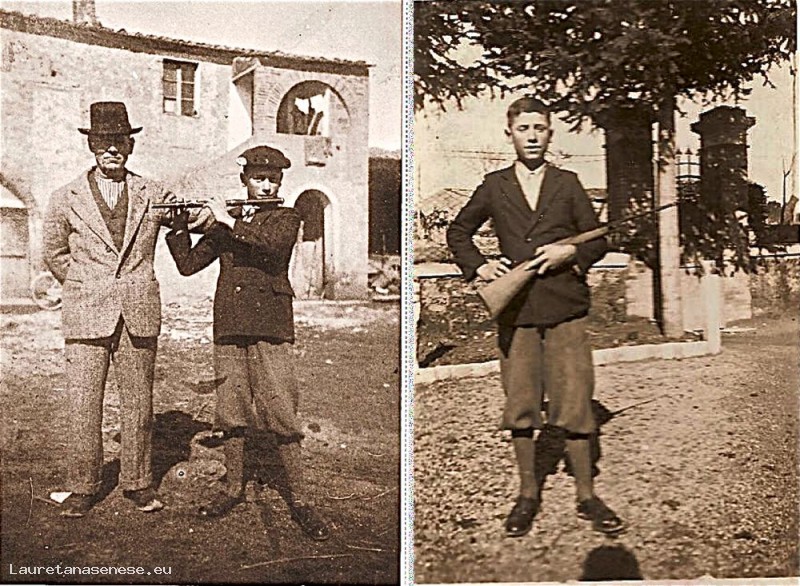 In quella a destra è ritratto all'interno della villa di Pozzolo con in braccio una carabina ad aria compressa, di proprietà di Franchino Giuliani, successivamente sposatosi con Concettina Fabbri, la pittrice recentemente scomparsa.