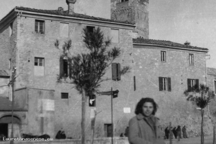 La foto di una ragazza ai giardini pubblici, ci permette di avere una visione completa e netta del lato ovest di Porta Massini.