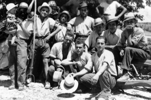 Giovani agricoltori ascianesi, ripresi dopo la tribbiatura nell'aia di San Marco.