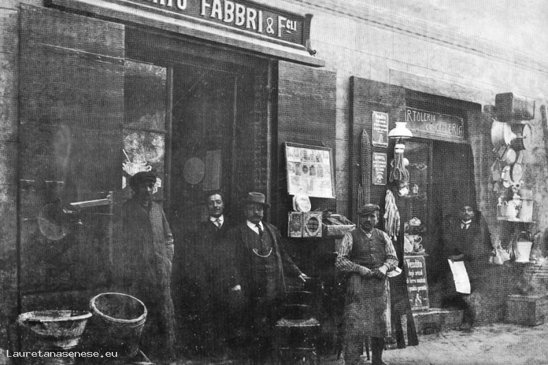 Torquato Fabbri e i suoi figli avevano un emporio che vendeva di tutto: dai casalinghi agli oggetti da lavoro e le munizioni per le armi da caccia. L’attività più nota della ditta era il laboratorio fotografico che, per alcuni decenni ha immortalato i luoghi e le persone del paese.