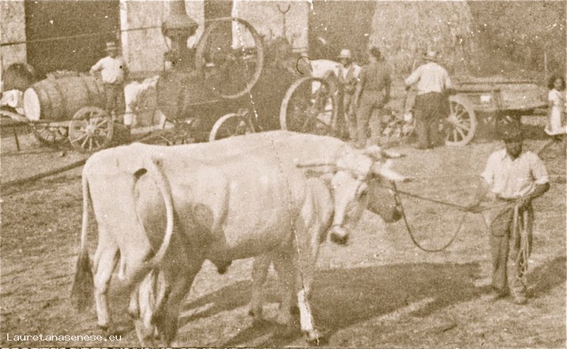 1944 - I buoi da traino per il trasporto del grano trebbiato Asciano