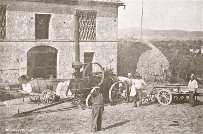Il valore dell'immagine è nell'aspetto documentale in termini di utilizzo ancora in quella data dei motori a vapore per far funzionare la macchina trebbiatrice.
