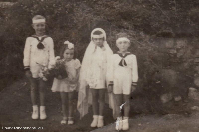 Foto ricordo della Cresima relative a bambini imparentati fra loro. Nell'immediato dopo guerra usava ancora raggruppare le feste per la Cresima e la Comunione di più bambini dello stesso nucleo familiare per contenere i costi dell'evento. In questo caso il denominatore comune sono le famiglie Vaselli - Fratagnoli, imparentate fra loro.