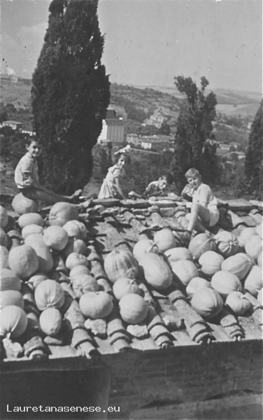 1948 - Bambini che giocano sul tetto delle zucche Asciano