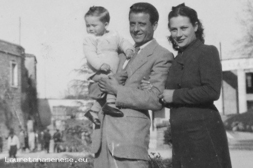 Attilio Giannettoni si è fatto fotografare con la moglie Vilma e il figlioletto, da poco nato, ai giardini pubblici quando ancora non c'erano i grandi abeti.
