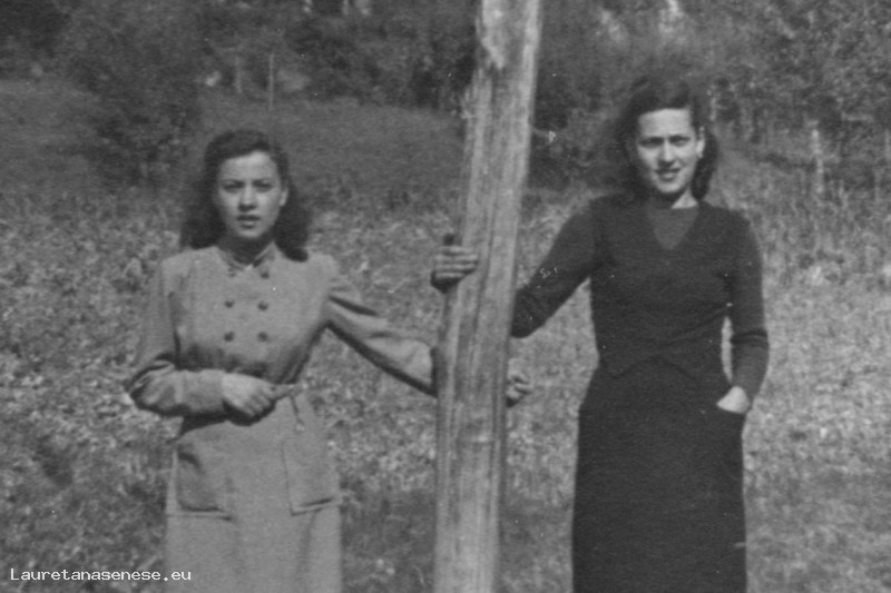 Due amiche in campagna , accanto a uno stollo per pagliai: