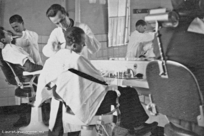 Il Barbiere Tonino Tozzi nel suo negozio che si trovava dove c'è stata l'edicola di Sandra, all'angolo fra via Mazzini e corso Matteotti.