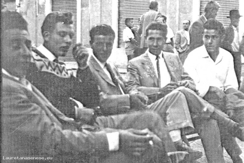 Seduti in piazza al bar di Hervè, conversando e guardando chi passa, si ricinoscono da sinistra: