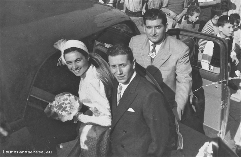 1952 - Partenza degli sposi sull'auto a noleggio Asciano