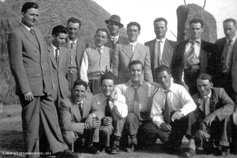 Dovrebbe trattarsi della foto ricordo di Aldo Benocci, ritratto in mezzo agli uomini della famiglia allargata