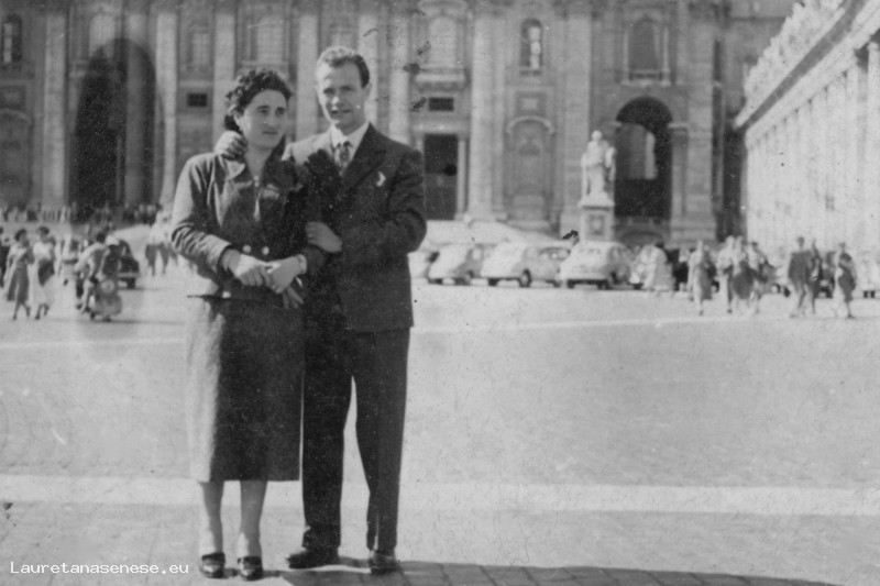 Silvano Trapassi e Silvia Lucatti in viaggio di nozze, fotografati in piazza San Pietro.