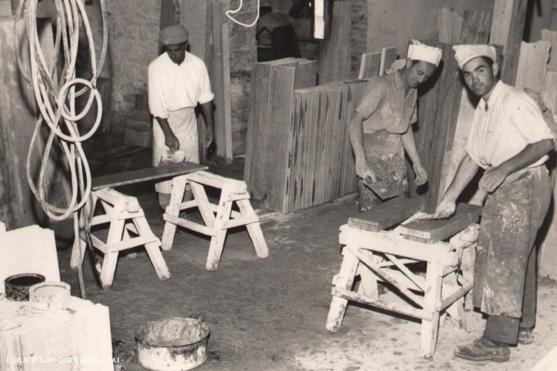 Le lastre utilizzate, dopo essere state tagliate e rifilate a misura, venivano stuccate e preparate per la lucidatura finale.