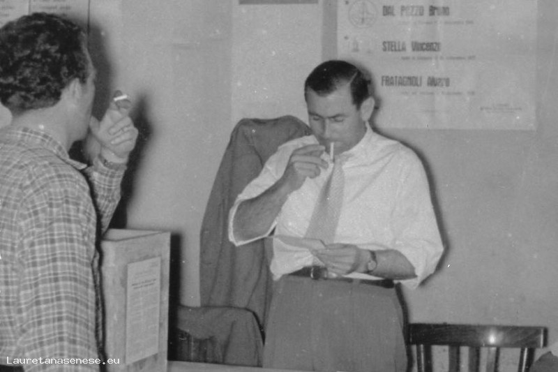 In base al manifesto affisso sul muro dietro, si scopre chi erano gli allora candidati a un seggio provinciale per il comprensorio Asciano-Rapolano: