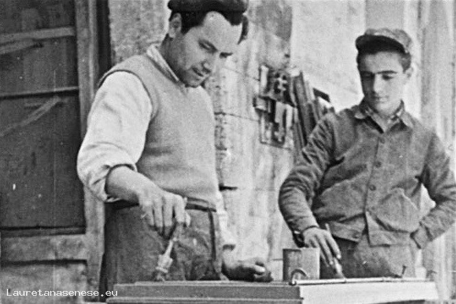 Nella foto si riconoscono Enzo Cantelli, a quel tempo falegname e Novilio Parrini, come ragazzo di bottega.