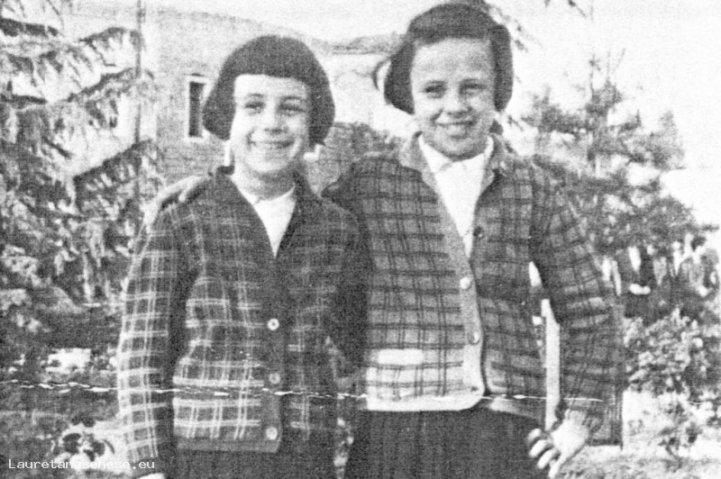 Vecchio ritratto delle figlie: Marisa e Miretta, del muratore Cantini ? ai giardini pubblici, vestite uguali come usava allora.