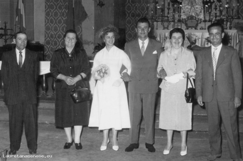 Tipica foto ricordo di Marcello, detto il Pipari, subito dopo la celebrazione del matrimonio, con i genitori alla sua sinistra :