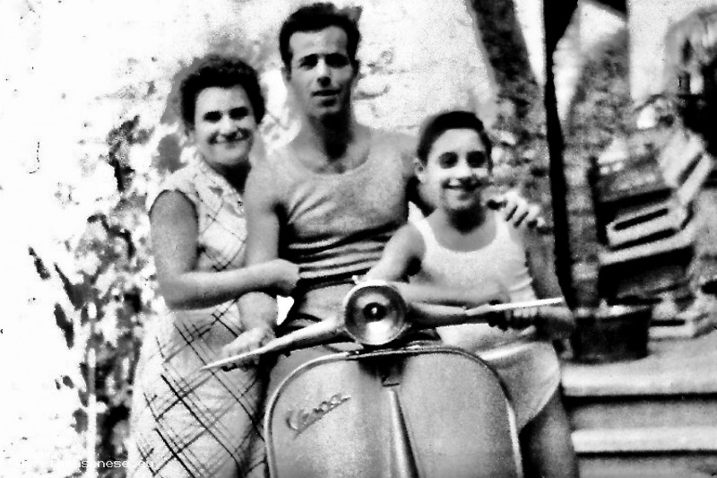 La passione per la Vespa è stata una costante per decenni, nel dopo guerra. Ma negli anni '50 pochi potevano permettersela. Era quindi normale farsi fotografare accanto allo scooter dei desideri come in questo caso.