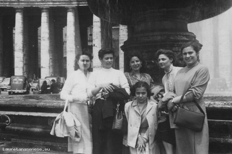 Le giovani donne ascianesi in Piazza San Pietro, accanto ad una delle fontane.