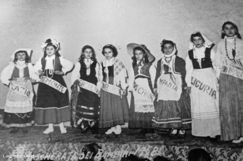 In questa occasione, forse nel periodo di Carnevale, sul palco sono stare fotografate un gruppo di ragazzine con costumi riferiti alle Regioni d'Italia.