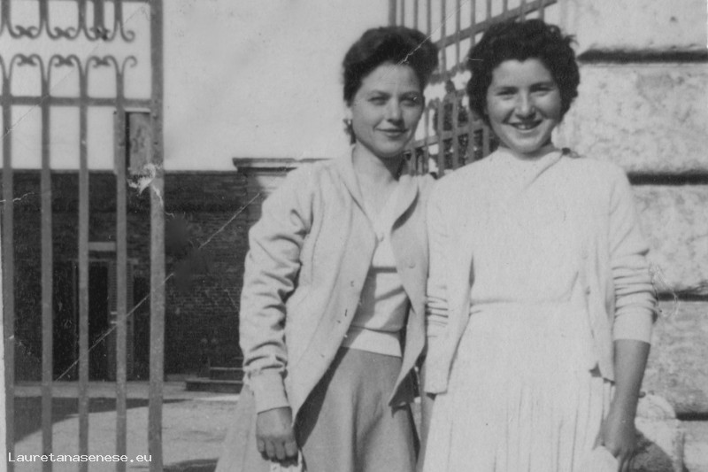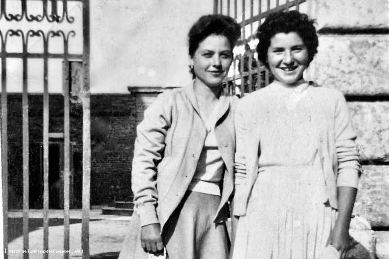 Due ragazze, che abitavano nei poderi vicini, si lasciano fotografare davanti al cancello della villa padronale.