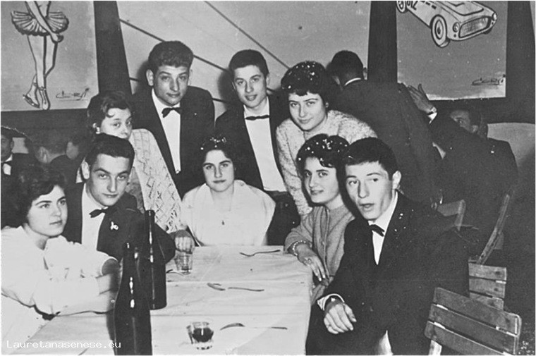 1958 - Tavolata di giovani al Ravvivati per il Carnevale Asciano