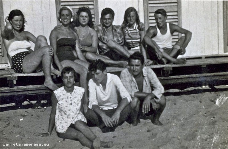 La foto dovrebbe risalire al 1959 e ritrae alcune ragazze ascianesi sulla spiaggia di San Vincenzo, più precisamente al Bagno Nettuno, primo stabilimento balneare dopo il porticciolo e gli scogli scendendo verso sud.