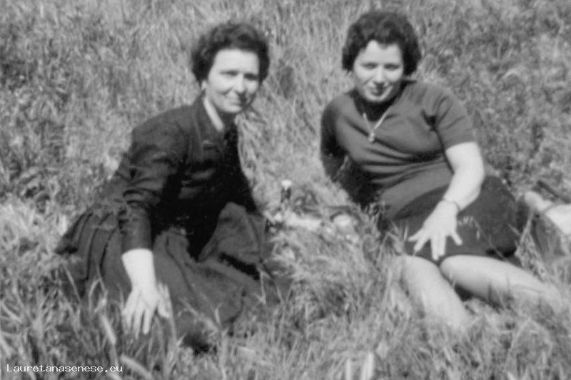 Le due signore sedute su un prato sono, partendo da sinistra: