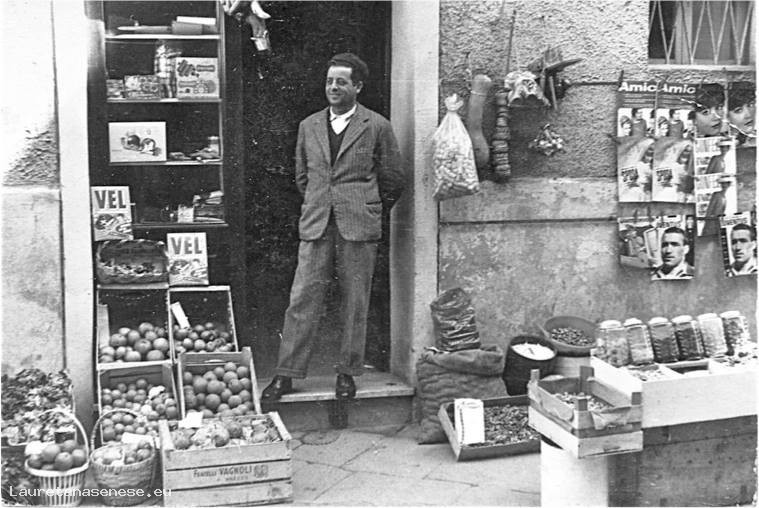 La bottega del Trillo, che si trovava dove ora c'è l'agenzia immobiliare, era in prevalenza un negozio di frutta e verdura. Vi si potevano, però trovare altri prodotti di largo cpnsumo: alimentari e per la casa. C'erano anche i "i chicchi" per i bambini che, nella foto, sono conservati in garaffe di vetro.